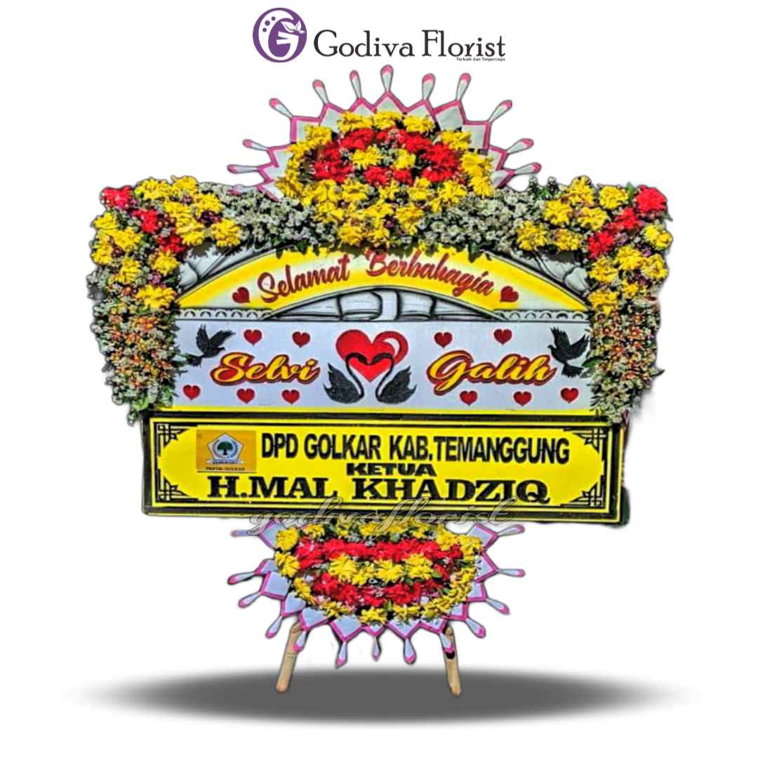• Karangan bunga ucapan atas bawah bunga segar kanan dan kiri.